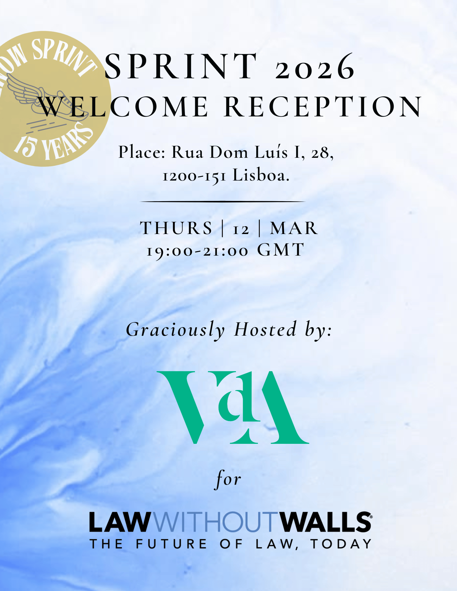To celebrate the kickoff of the 15th Anniversary LWOW Sprint, LawWithoutWalls invites you to a special Welcome Reception in Lisbon, generously hosted by VdA Vieira de Almeida & Associados for LWOW on the evening of Thursday, 12 March 2026.
